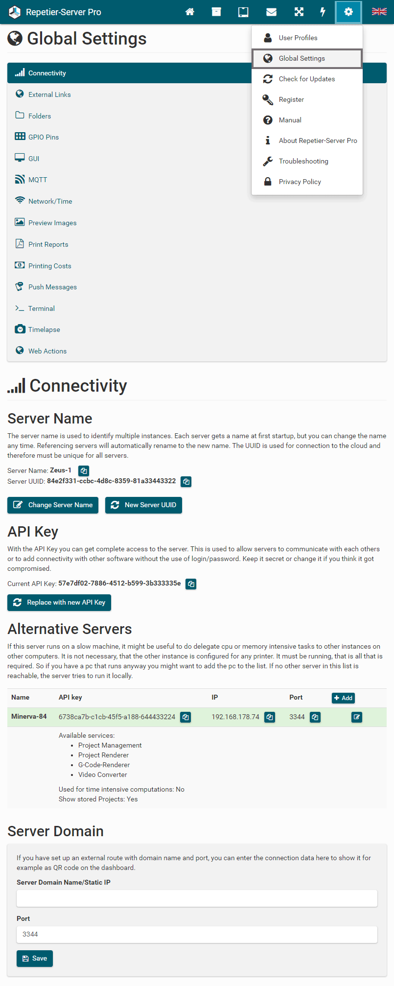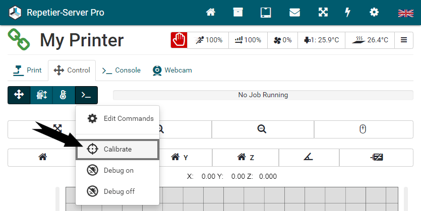 To start and stop Repetier-Server Pro, just enter Start Server or Stop