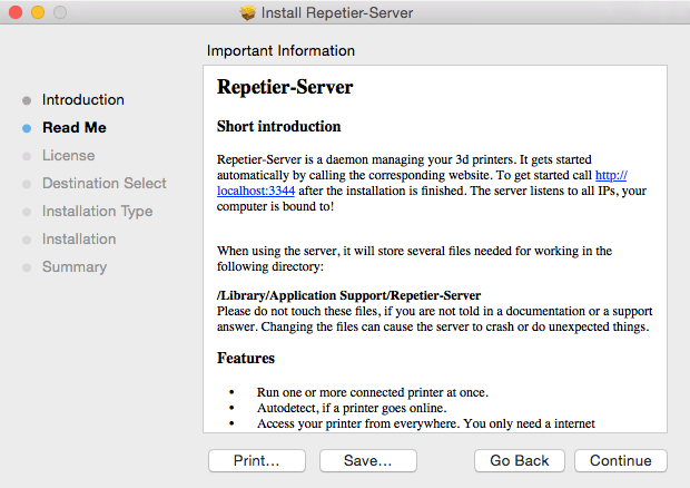 To install a new version of Repetier-Server Pro download the version matching your computer and open a terminal and go to the download directory. There you enter: